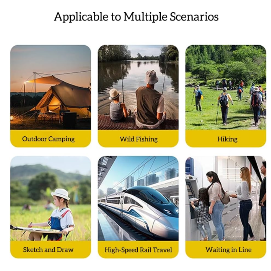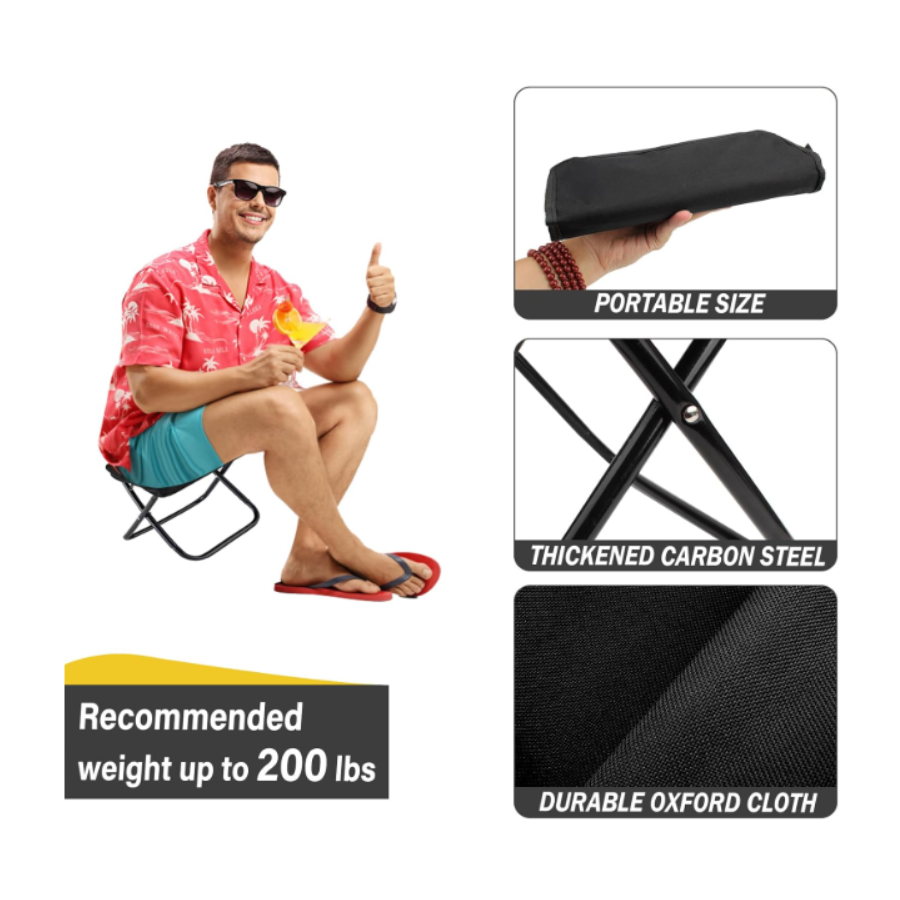El taburete ligero de solo 1.6 libras se abre y pliega en segundos, ideal para viajes, senderismo, pesca, picnic o esperar en fila. Fabricado con estructura de acero al carbono resistente y tela Oxford duradera, garantiza un asiento estable y confiable en exteriores.