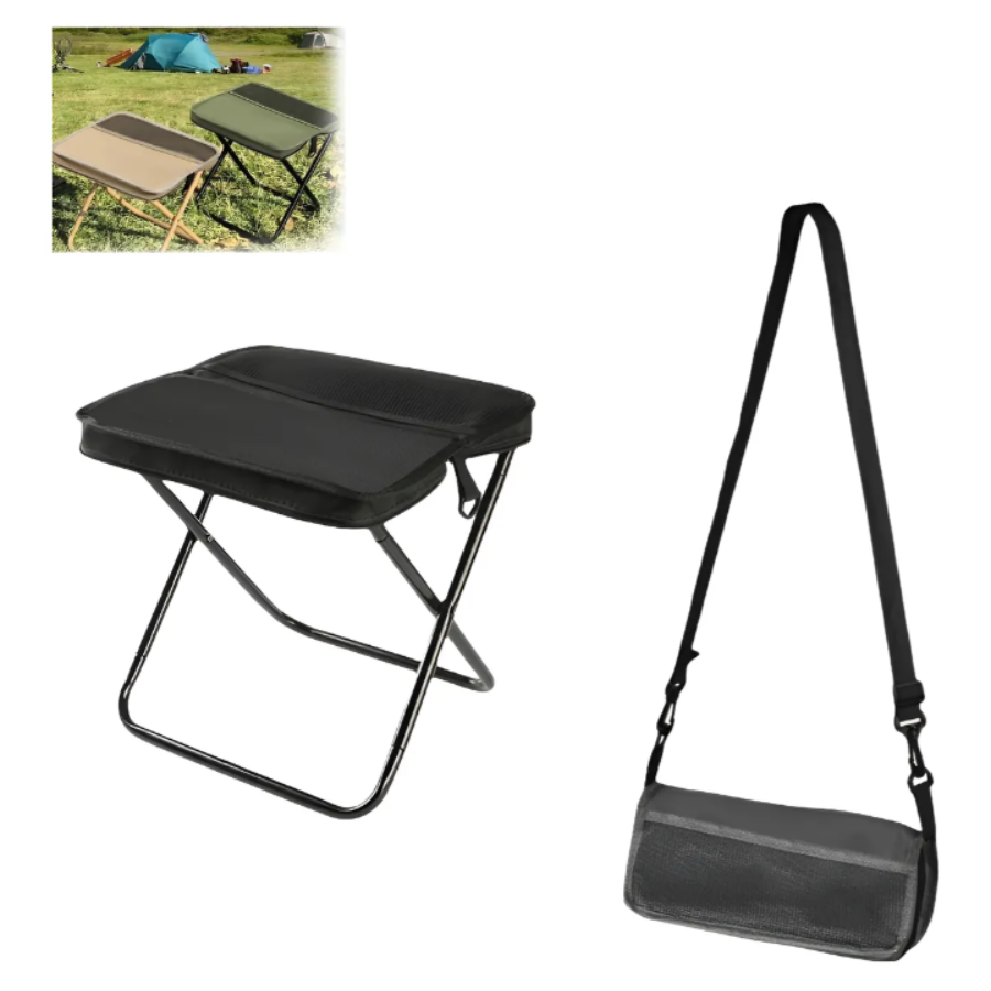 Combina un asiento portátil resistente con una bolsa con cremallera integrada para almacenar tus objetos, permitiéndote transporte con manos libres.