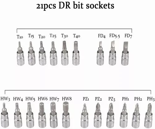 Materiales de alta calidad: el dado de transmisión, la broca de transmisión y el juego de llaves están hechos de acero al cromo vanadio de alta calidad para mejorar la durabilidad.
