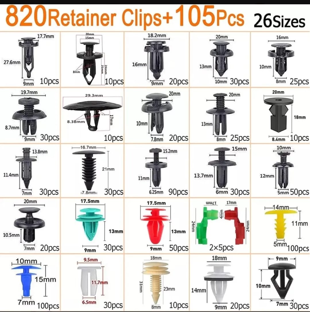 26 tipos de cierres automáticos: nuestros clips de retención de sujetadores incluyen los 26 tamaños más comunes de reemplazo para GM, Ford, Chrysler, Toyota, Honda, Nissan, Mazda, Chevy, Jeep, etc. Pero no solo para estos coches, si los tamaños y la forma se adaptan bien a tus necesidades, también es un kit