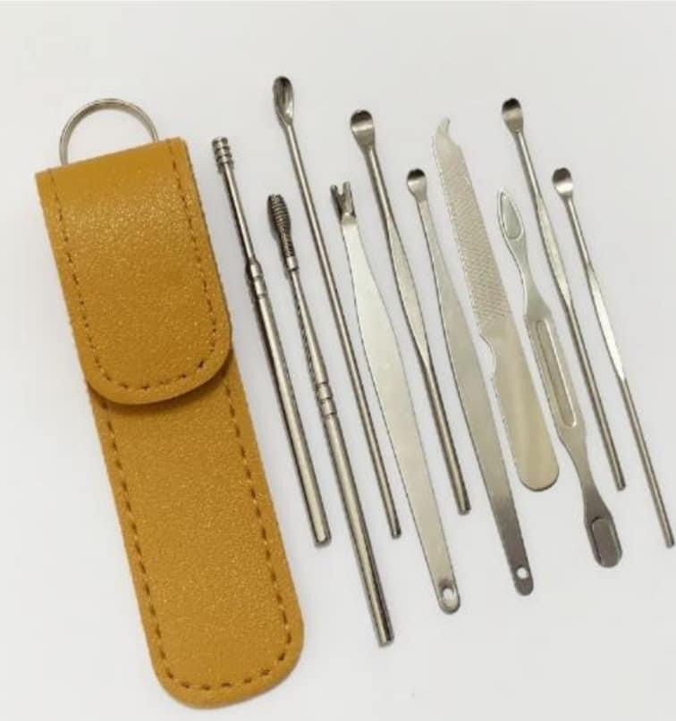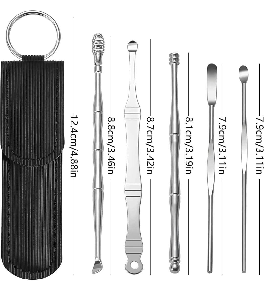 Portátil: la herramienta de eliminación de cera de oídos viene con una bolsa de poliuretano portátil. La funda protectora mantiene tus herramientas limpias y sin daño, por lo que es ideal para viajes o almacenamiento en casa.