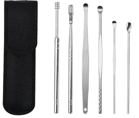 El limpiador de oídos de 6 piezas es un removedor de cera que te ayudará a mantener la higiene de tus oídos y protegerte contra diversos trastornos del oído, además de aliviar eficazmente la picazón y masajear el canal auditivo mientras se limpia aliviar. este kit permite una buena evacuación del cerumen hacia el exterior del canal auditivo, regulando su cantidad y evitando la formación de un tapón de cera.