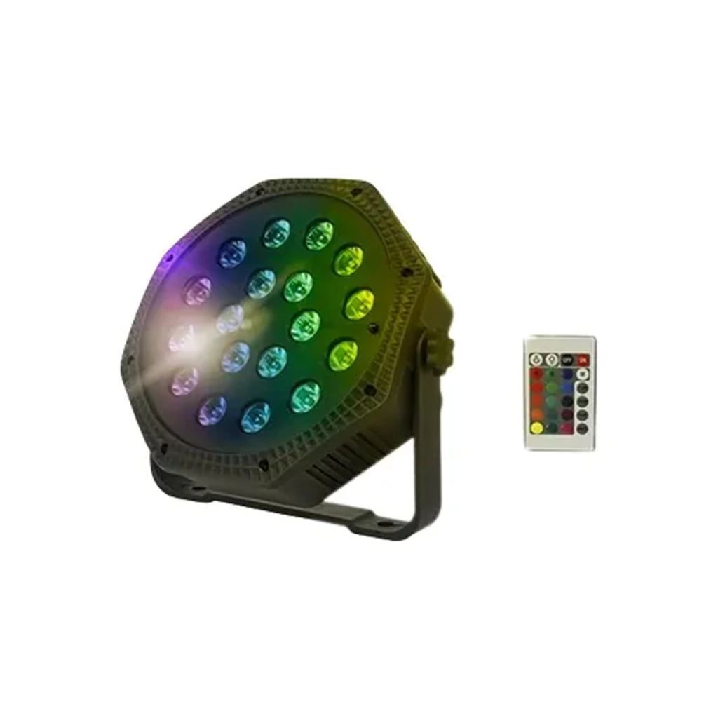 - Tipo: Cañón LED.- Potencia: 9W- Lámpara LED: RGB 3 en 1.- Ángulo de radiante: 120°.- Efecto: Estrobo, flash, fade y smooth- Material: Cuerpo de plástico- Color: Negro- Uso: Interior.-Incluye control