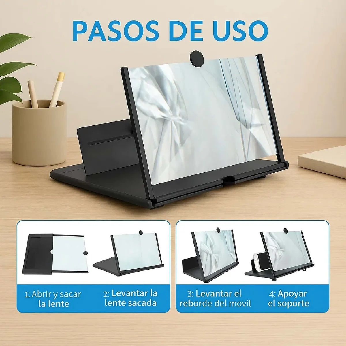 4. materiales de alta calidad: plástico abs y espejo fresnel, robustos y duraderos, con mayor definición. levante el marco para ajustar el angulo de vision. la almohadilla de silicona antideslizante protege y estabiliza el @@teléfono. compatibilidad perfecta: ya sea un iphone o un teléfono android, la pantalla de proyección de lupa se puede utilizar con su dispositivo. disfrute visual 3d, evite la fatiga visual. @@seleccionados: @@material: plástico abs+lente phoenix @@ampliación: 3-4 veces @@función: refuerzo, protección ocular, protección contra la radiación, stent @@tamaño del producto: 220x 180 x 9mm/10,23 x 6,88 x 0,39 @@color: negro, blanco, rojo se envía al azar
