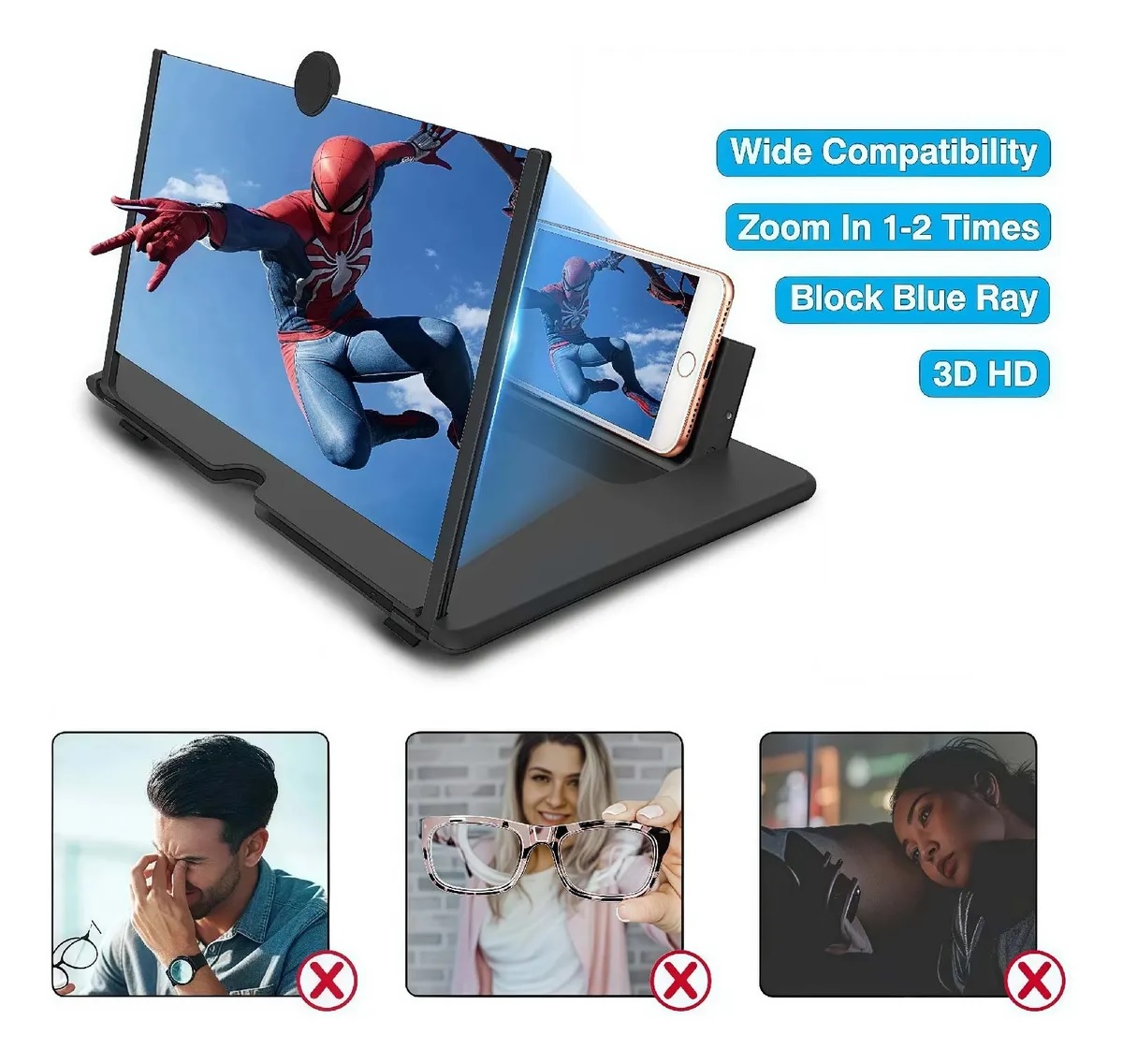 transporte. funcionamiento sencillo: el potenciador de pantalla duplica el tamaño de la pantalla, lo que le permite aprovechar al máximo las películas y los vídeos de su smartphone de alta definición. añade un teclado bluetooth y úsalo para la reproducción hd.