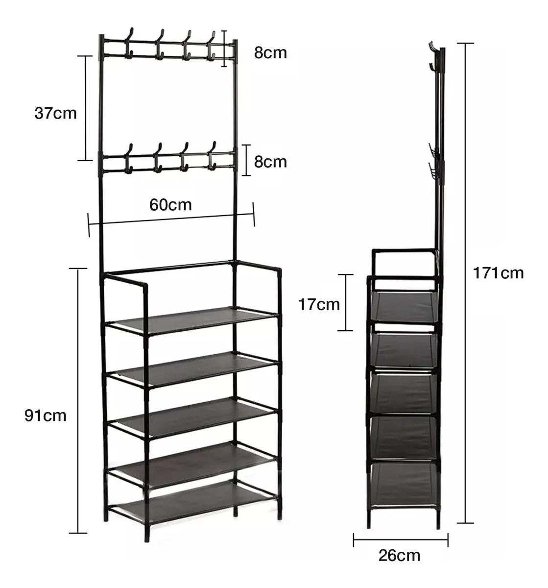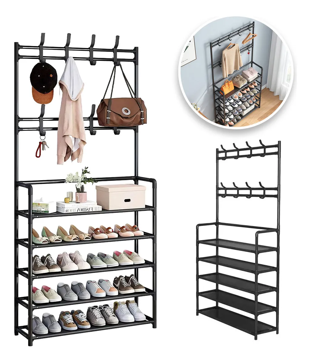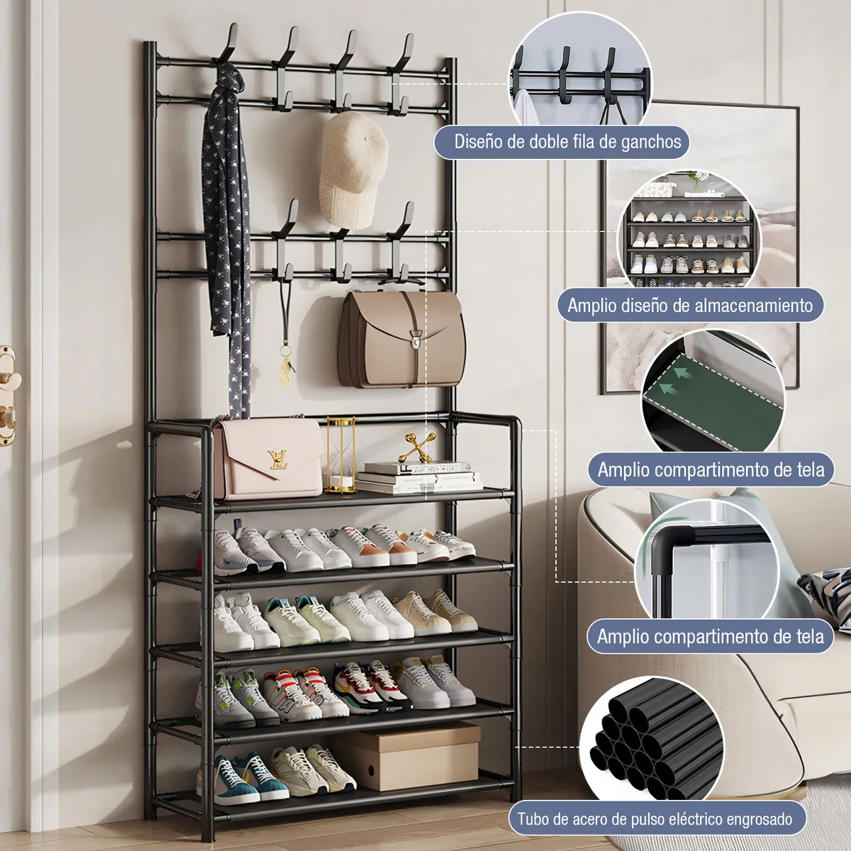 Diseño 2 en 1: perchero superior + estantes inferiores para calzado